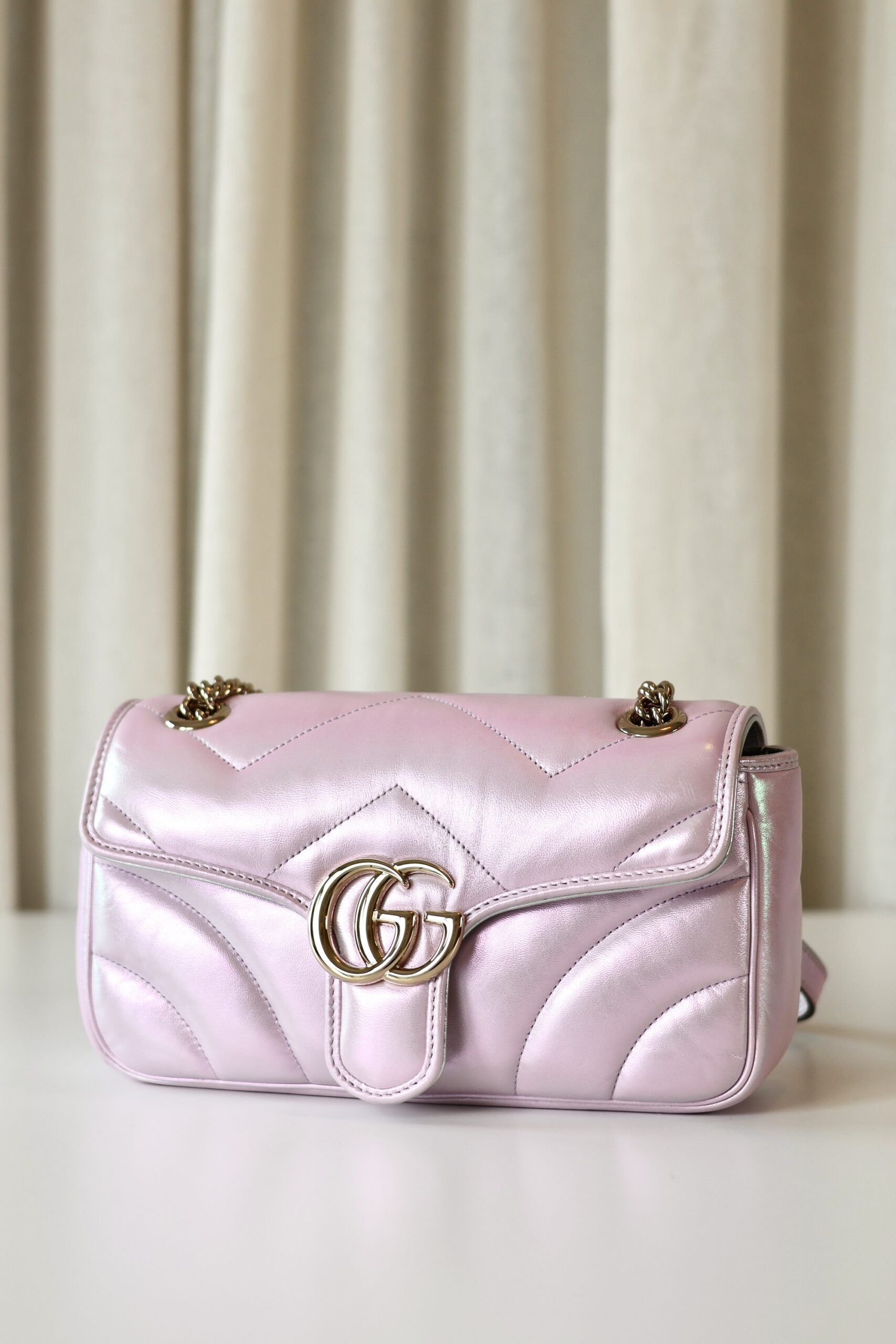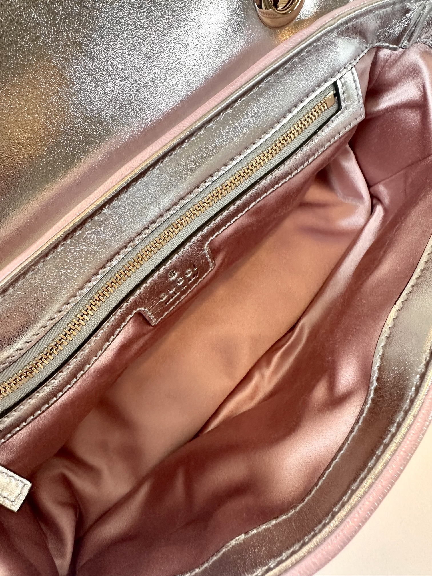 Gucci Marmont metallic pink