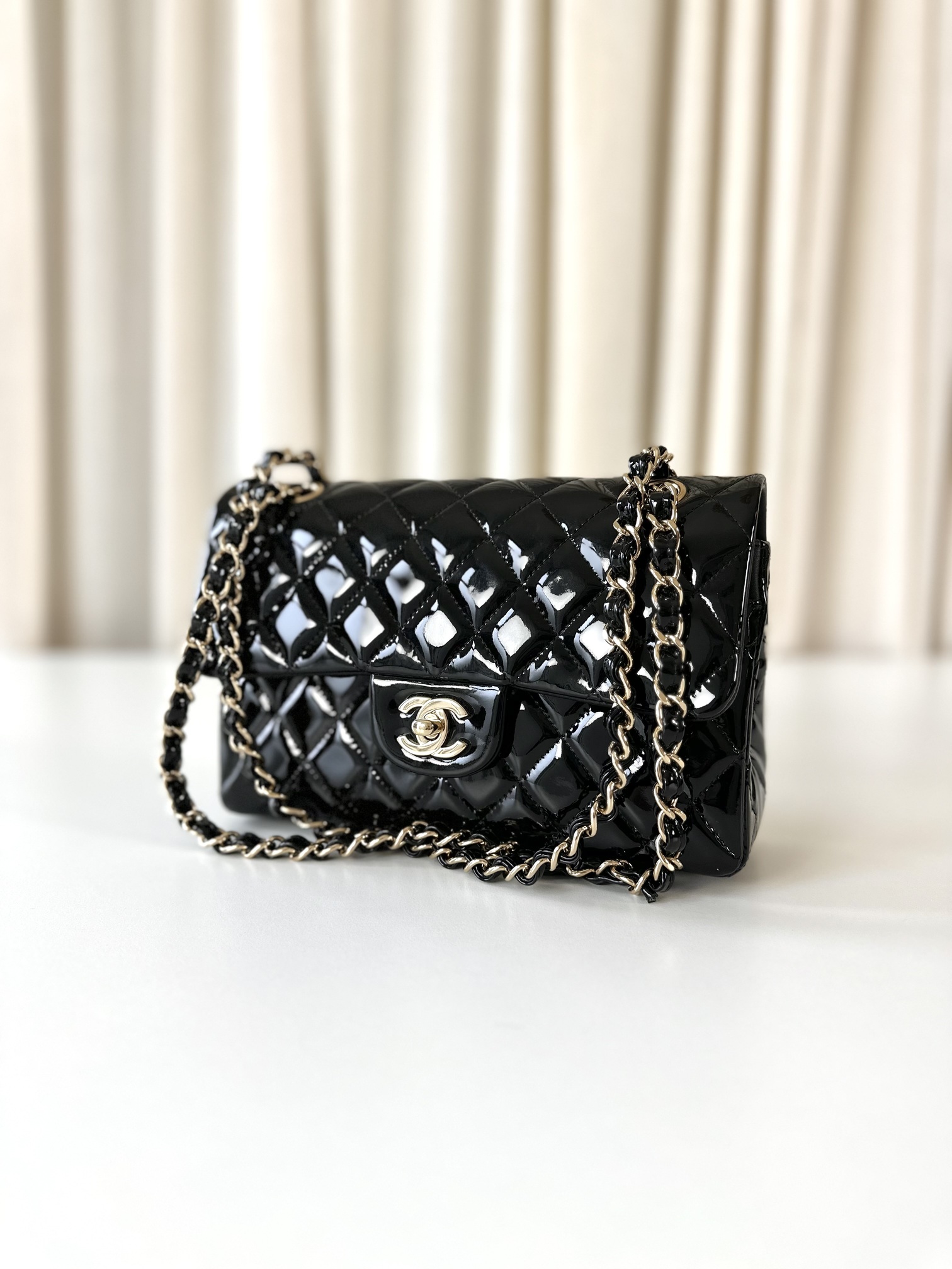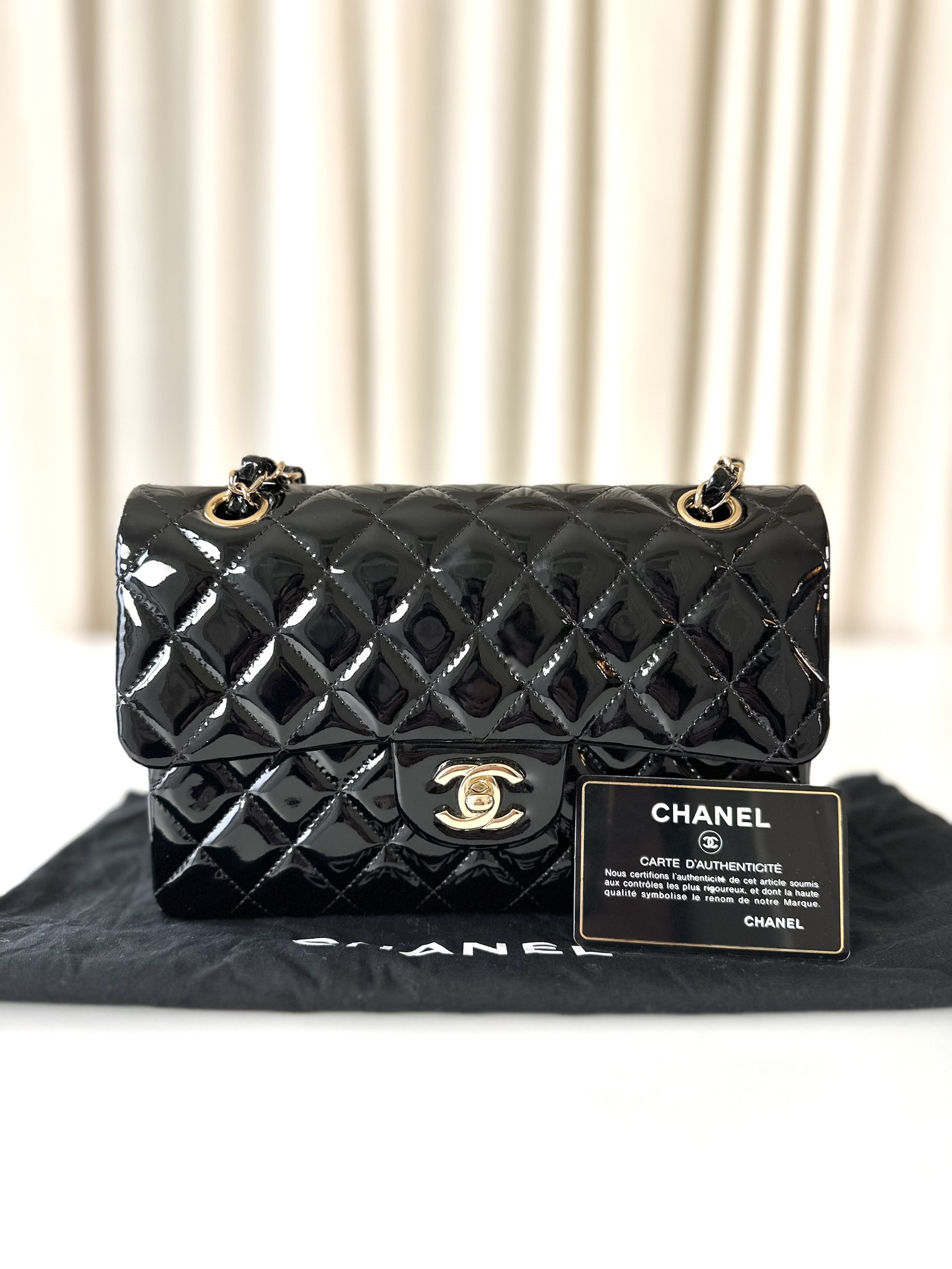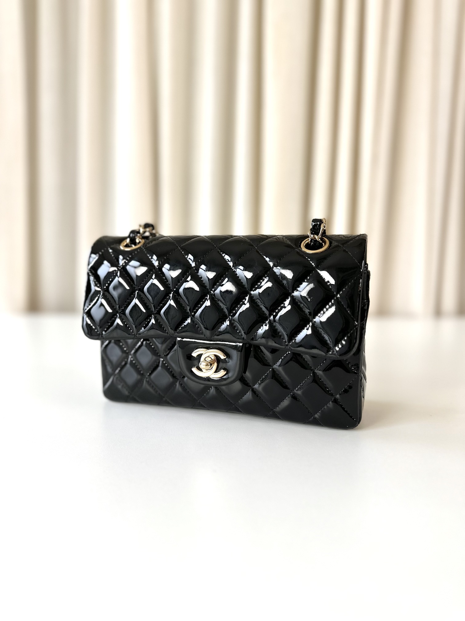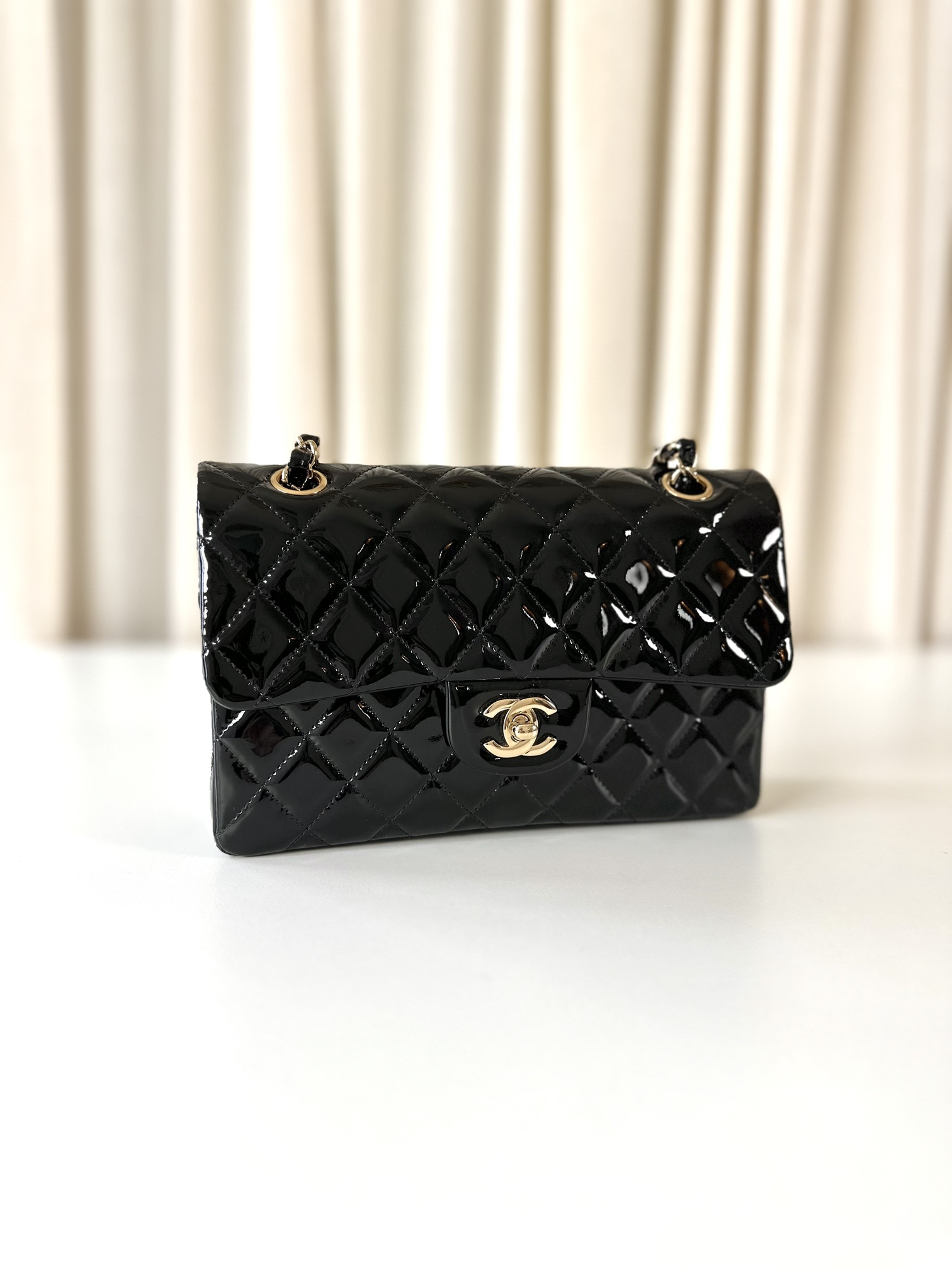 Be the first to review “Chanel patent classic double flap bag small”
