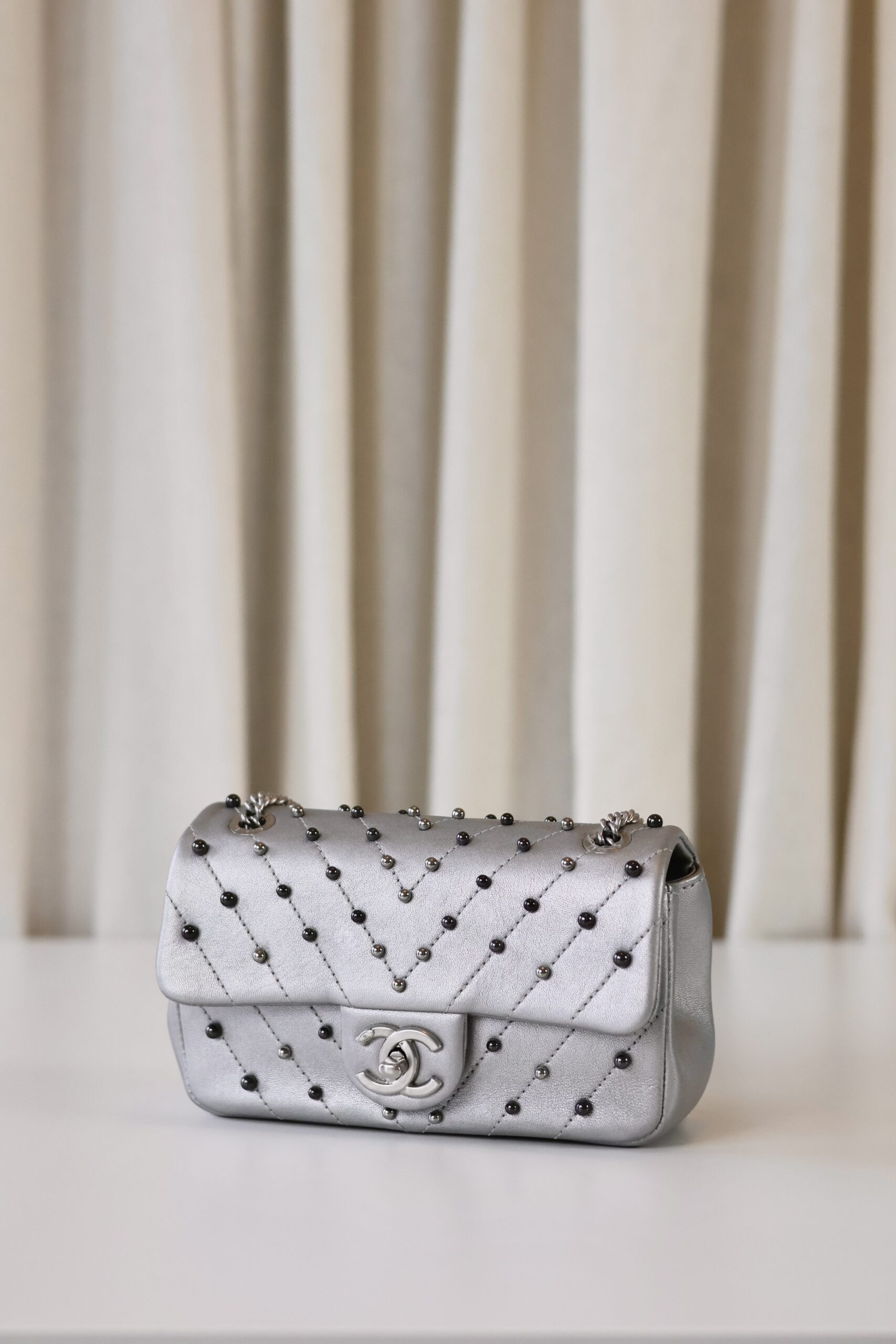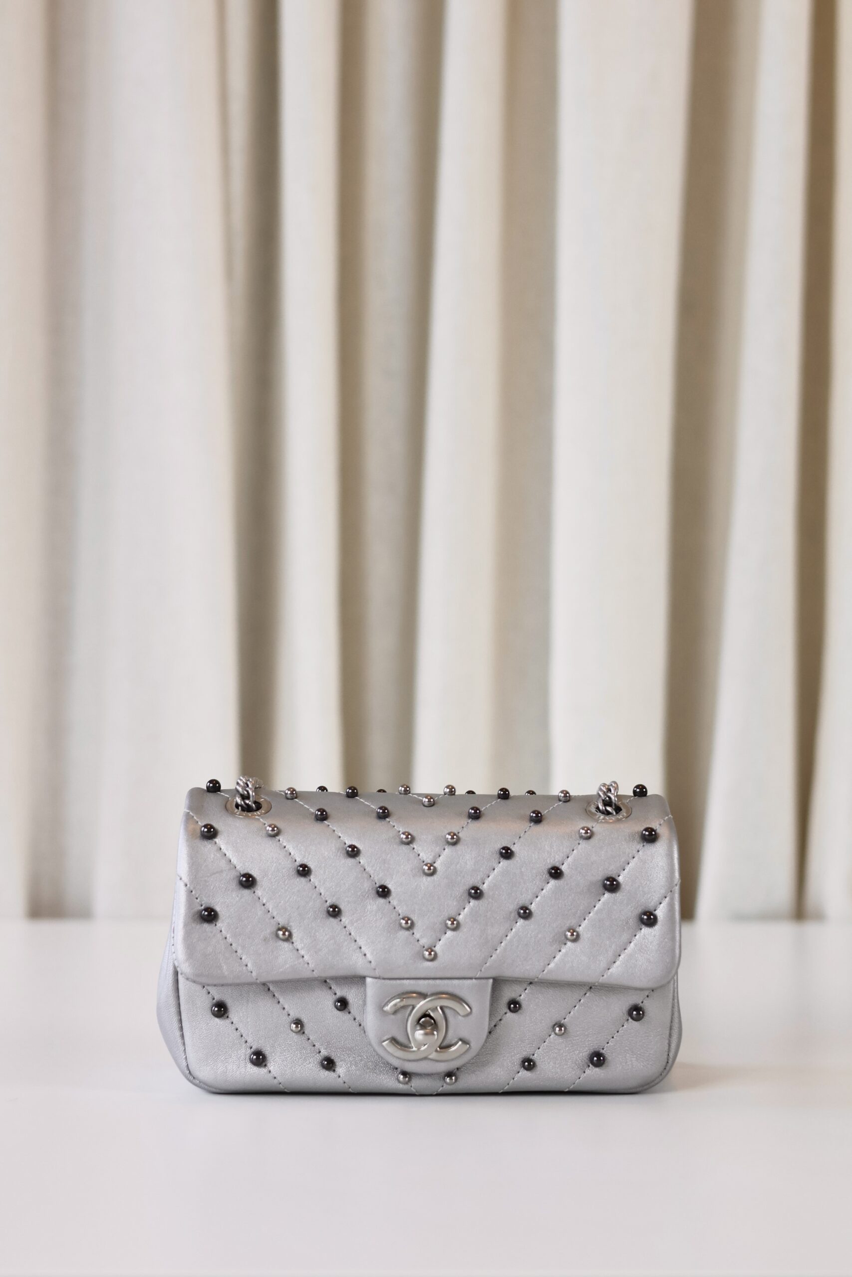Be the first to review “Chanel rectangular metallic silver”
