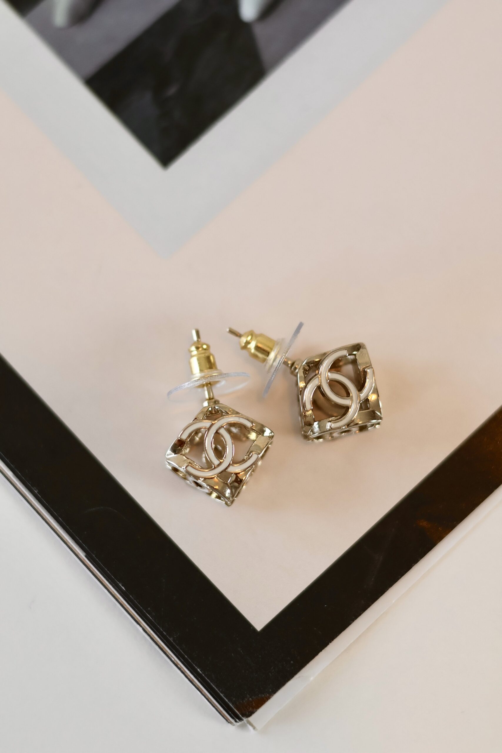Chanel square CC earrings